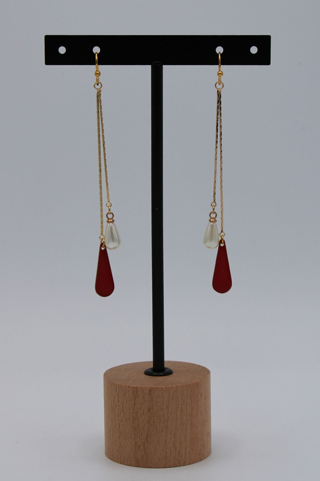 Ces boucles d’oreilles aériennes jouent sur la dualité du rouge passion et de la transparence cristalline, suspendus à deux chaînettes dorées. Leur mouvement délicat et leur contraste subtil évoquent les premières lueurs du jour, entre feu et lumière. Une création poétique et minimaliste, à la fois douce et vibrante.